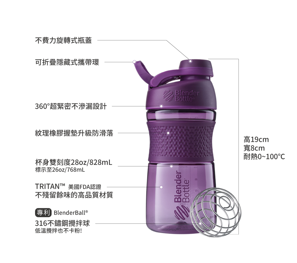 BlenderBottle《Sportmixer系列》Tritan旋蓋直飲運動搖搖杯20oz/590ml