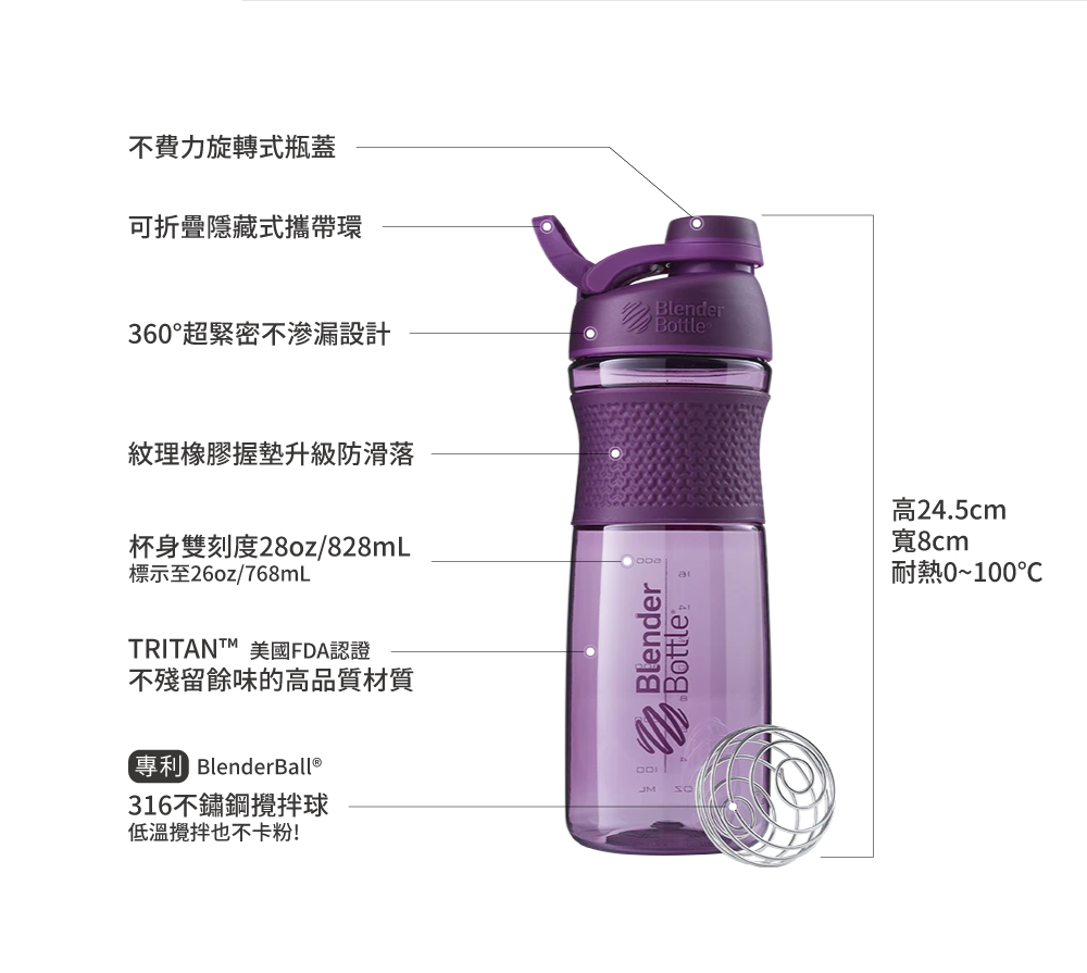 BlenderBottle《Sportmixer系列》Tritan旋蓋直飲運動搖搖杯28oz/828ml