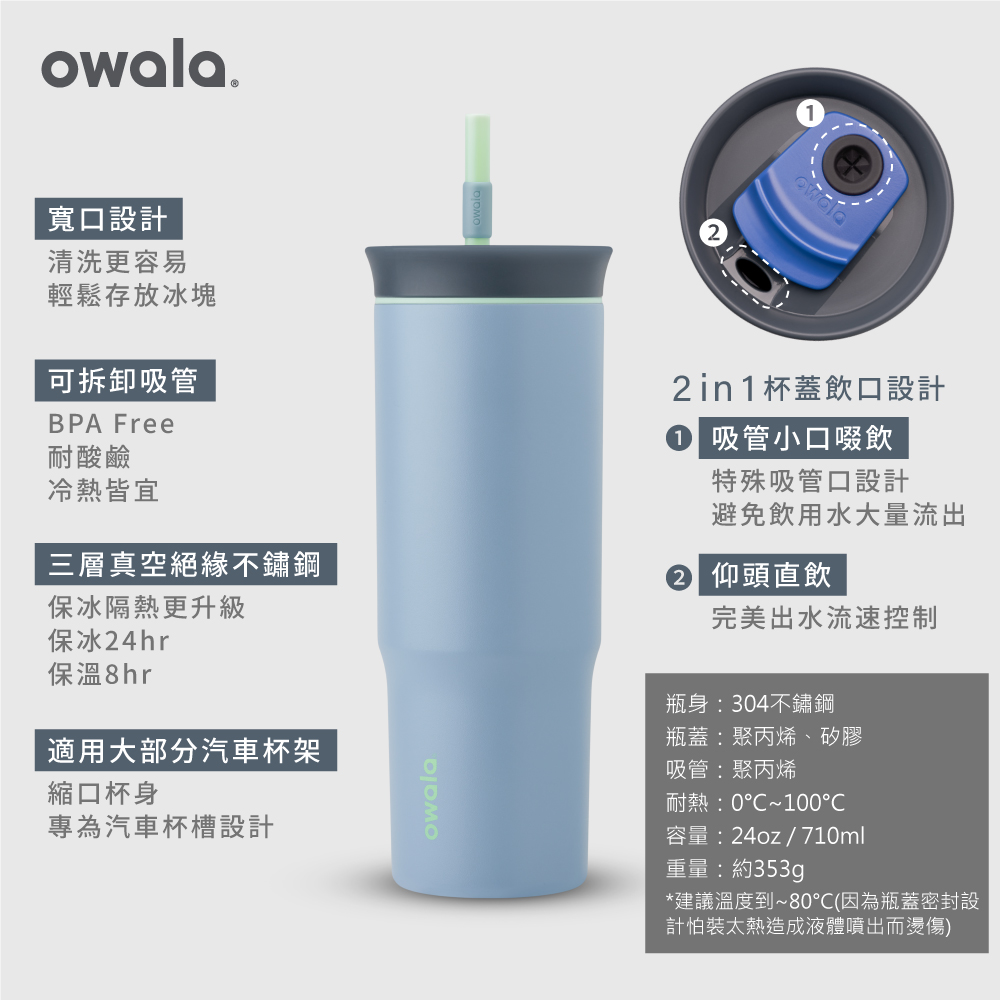 【Owala】Tumbler 大容量雙層不鏽鋼 雙飲口吸管隨行杯24oz / 710ml