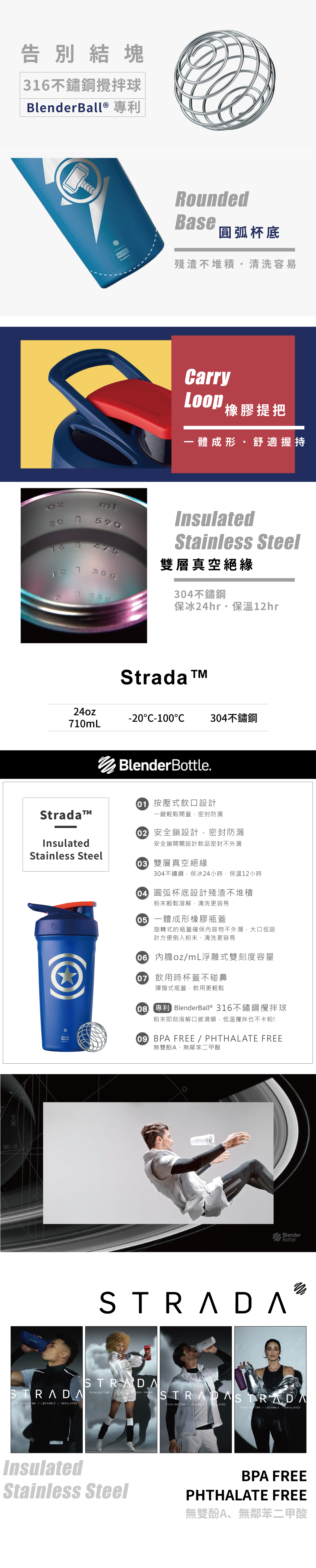 BlenderBottle《Strada系列MARVEL特別版》不鏽鋼搖搖杯24oz