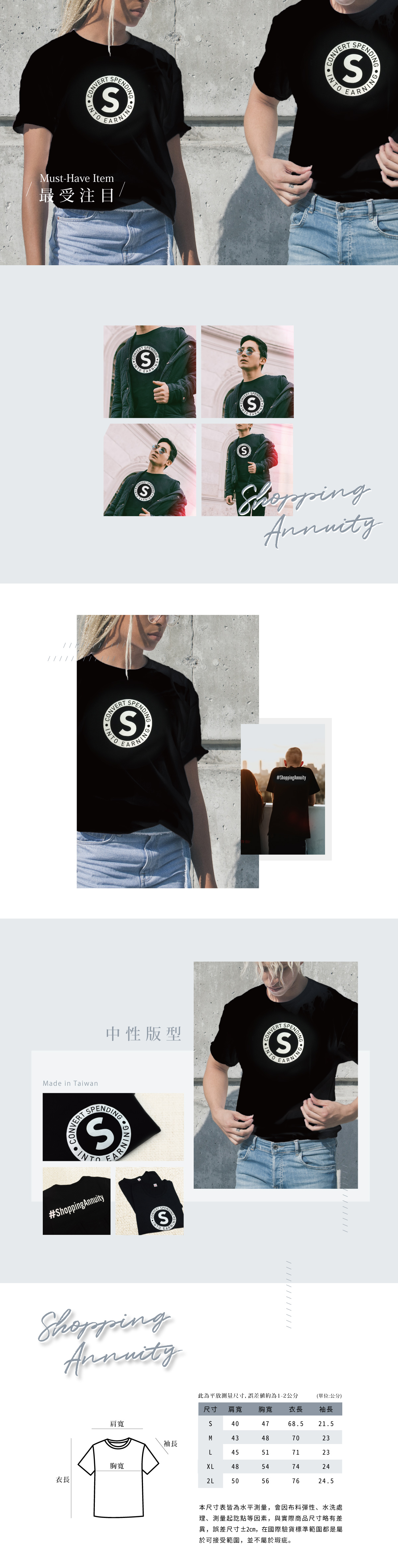 【Shopping Annuity】購物年金設計款上衣(中性款-一般版型黑)